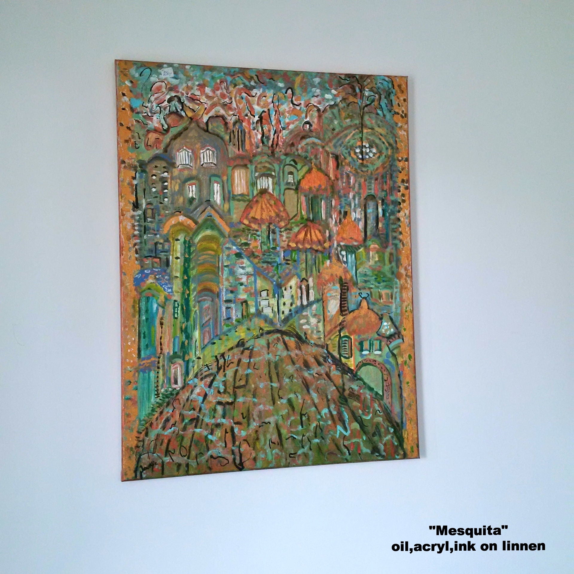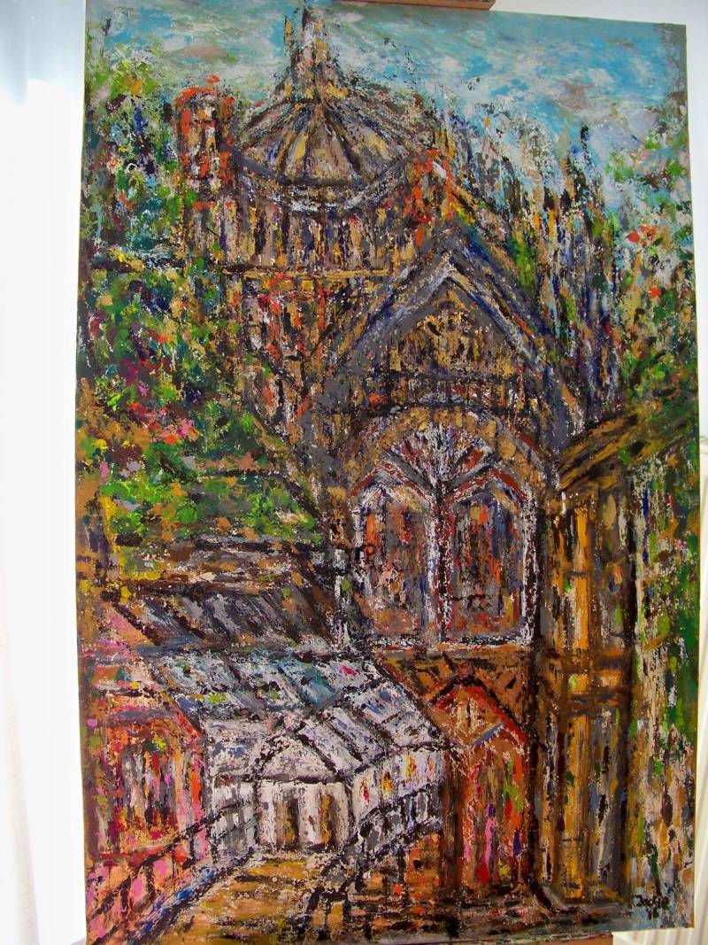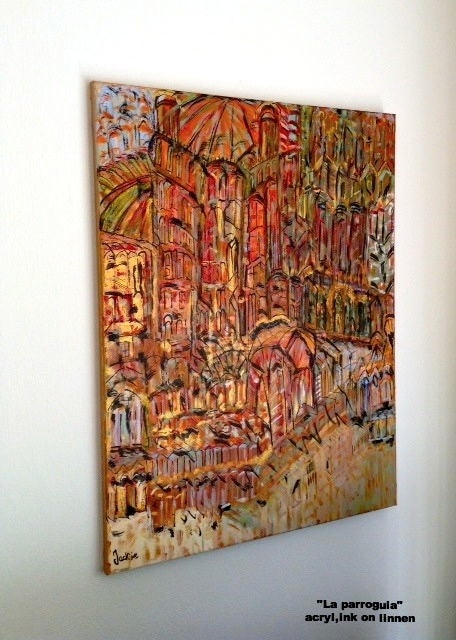 CATHEDRAL BY JACKIE ART OIL PAINT ON LINNEN